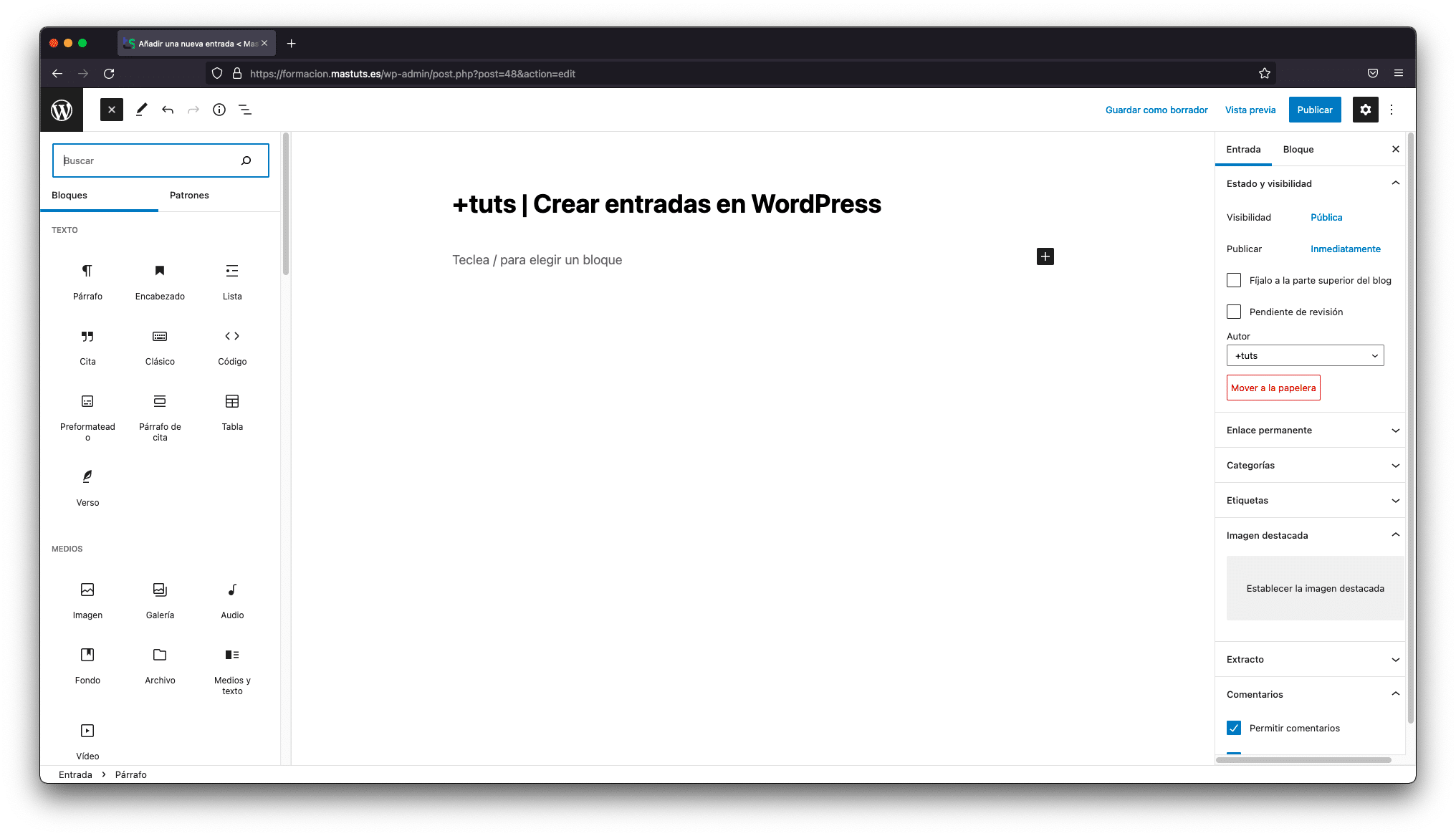 Crear entradas en WordPress